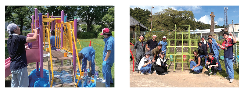 The Japan site discussed with the city of Iruma, where one of our factory plantsis located, and have been approved to repaint the playground sets at local parks and nurseries. This activity started when one of our employee’s family noticed that their child seemed very sad to see the paint on the park’s playground set was chipping away. In hope to bring smiles to this child’s face, we met with a representative from the municipal offi ce in the city of Iruma. After many discussions, we repainted playground sets at two parks and one nursery in 2024. This activity not only enabled us to contribute to environmental preservation by utilizing waste paint, but also gave us the opportunity to contribute to the local community and bring smiles to its residents. The playground sets that once looked shabby with chipping and fading paint now look bright and shiny, repainted with our waste paint. The child of the employee that we wanted to cheer up as well as the municipal office and the residents of the city of Iruma were all very happy with this repainting.
